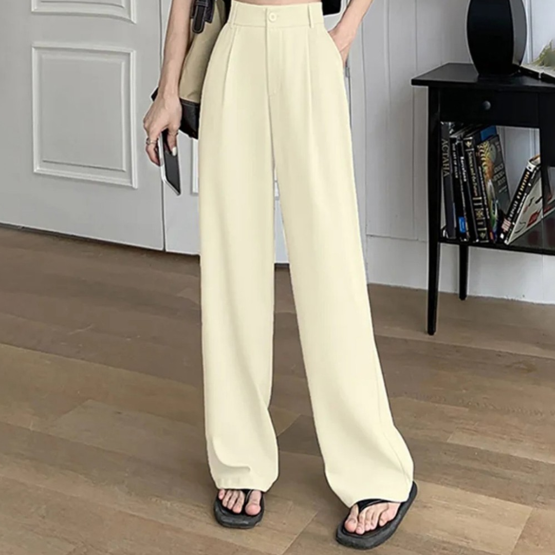 Women's Summer Straight Wrinkle Polyester Stretchable Wide Leg Pants